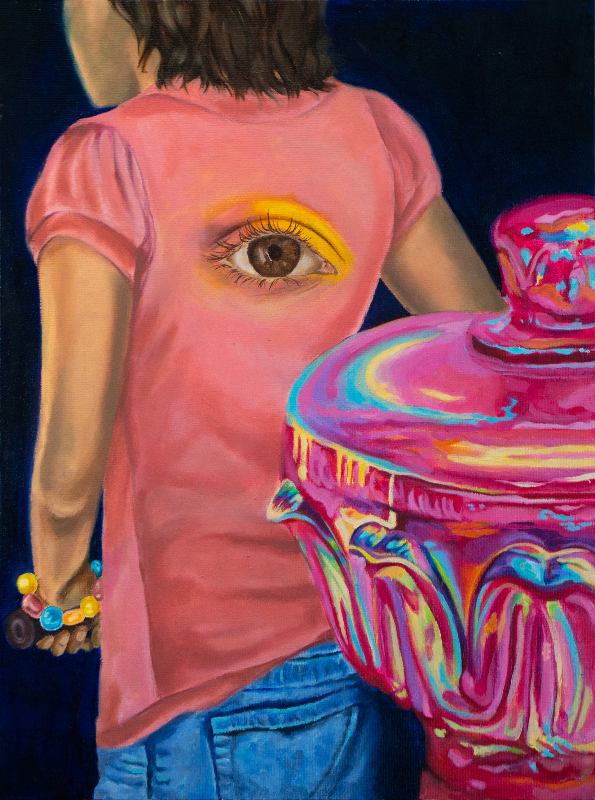 A visual collage that collects visual candy, a composition of euphoric colors and a kid riding a scooter, a memory transformed to fit into current events.